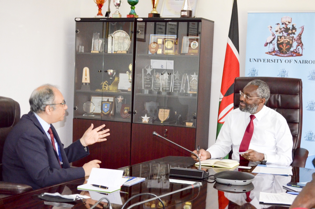 The Managing Director, Elgon Kenya Limited, Dr. Bimal Kantaria paid a courtesy call on the Vice-Chancellor, University of Nairobi, Prof. Stephen Kiama on 5th October, 2021. Elgon Kenya is a leading agri-inputs supplier in the East African region supplying chemicals, fertilizers, seeds, irrigation, greenhouse sheeting, plastics, nets, packaging materials and animal health products
